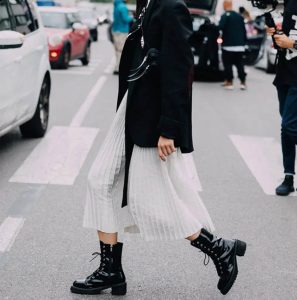 Mini skirts are a great way to add a flirty and fun element to your high street outfit. Whether it’s a pleated mini, a denim skirt, or one in a leather material, it can easily be paired with oversized sweaters, blazers, or tucked-in tees. For dresses, try one with a bold print, like floral or animal print, and pair it with combat boots or sleek ankle boots to give it an edgy twist.